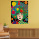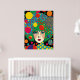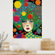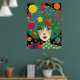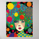 Colourful abstract portrait of a woman with afro style hair surrounded by polkadots.