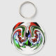 This artwork presents two stylised, abstract profiles facing each other, created using swirling lines of dynamic colours. The background is distinctly divided, with one half featuring a deep black and the other a bright white. At the meeting point of the two profiles, a small, circular area of blended colours adds an intriguing focal point.