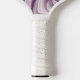 This pickleball paddle features an abstract liquid marble pattern inpurple and white.