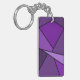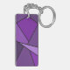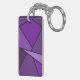 Inspired by stained glass, this stylish geometric design contains polygons in various shades of purple outlined in black. A lavender triangle slashes in from the upper right with an array of progressively darker purple quadrangles and other shapes spiralling around it from light to dark. Two dark purple shapes ground the left side of the original design.