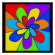 Geometric and colorful pattern: abstract cartoon groovy flowers in rainbow colors