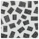 An abstract pattern made up of hand drawn rectangles each decorated with spots/holes.