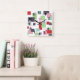 This wall clock has a mid-century modern design of rectangles and lines in 1950s colors.