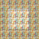 This fabric has a mid-century modern design of overlapping rounded rectangles in shades of light blue, orange, gold, brown, deep red, teal, and pea green. If you like the design but prefer different colours, message me.