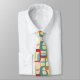 This necktie has a mid-century modern design of overlapping rounded rectangles in shades of light blue, orange, gold, brown, deep red, teal, and pea green. If you like the design but prefer different colours, message me.