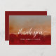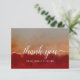 Simple and modern wedding thank you card design featuring deep red, earthy orange and dusty grey abstract background.