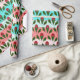The artwork features an abstract drawing of a red rose along with leaves in an elegant, simple pattern. The cute floral design is presented on a fountain blue background. The design allows for customisation of the background colour - if desired.