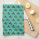 Abstract Red Roses & Leaves Floral, Fountain Blue Tea Towel