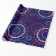 Abstract Red White Fireworks on Blue Wrapping Paper