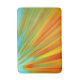 Abstract red yellow orange green stripes on blue bath mat