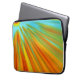 Abstract red yellow orange green stripes on blue laptop sleeve