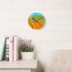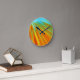 Abstract red yellow orange green stripes on blue round clock