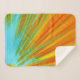 Abstract red yellow orange green stripes on blue sherpa blanket