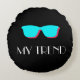 Abstract Retro Pop Art - Turquoise & Pink Glasses Round Cushion