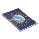 Abstract retro style yellow orange sun rays with a planet in the middle. Choose from sketchbook, bullet journal, checklist, graph paper, recipe book, or lines in various widths and colours. Also choose a spine colour to further customise your notebook look.