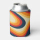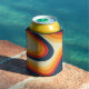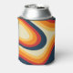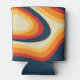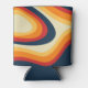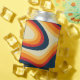 Abstract retro style waves geometrical pattern illustration with red, orange, yellow and beige striped waves decoration on dark blue background.