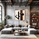 Bold colours and geometric shapes intertwine in a visual dance, expressing emotion and balance without representing reality. The abstract composition captivates the eye and transforms the space with energy and aesthetic depth.
