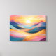 A vibrant abstract painting featuring rolling hills in soft pastel colours, blending into a dreamy sunset. The artwork showcases textured brushstrokes with golden accents, creating a warm and inviting atmosphere.