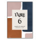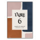 Abstract rust, navy + pink modern contemporary wedding table number. Graphic hand painted design. Script text and bold typography.