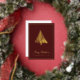 Abstract Scandi Christmas Tree Burgundy and Gold Foil Holiday Card... The front of our luxe holiday card features a real gold foil abstract line drawing Christmas tree in the Scandinavian style above script text "Merry Christmas" and your name and year in classic sans serif typography... on an elegant burgundy red background. The back of the card is black and white, displaying the same tree in black above your personal holiday message and signatures in black ink on a white background. All text on front and back of the card can be easily revised on the personalisation template.