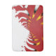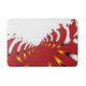 An abstract art design of a mythical creature reminiscent of a sea anemone, in red, yellow, white and gold.
