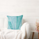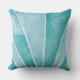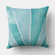 Stylish, coastal cotton throw pillow features an abstract watercolor shell design in ocean blue and tropical turquoise. Perfect for a beach house, vacation rental, and nautical home decor.