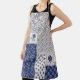 Abstract seamless delicate patchwork pattern, dark indigo blue and light beige floral lacy ornament from stylised rose flowers, leaves in Provence style. Textile design, batik paint, pillow embroidery