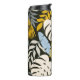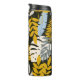 Abstract seamless pattern with tropical leaves and thermal tumbler