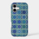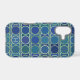 Abstract blue circle pattern with different shades of blue on monogrammed phone case.