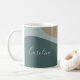 Abstract Shapes in Teal Personalised Script Name Coffee Mug