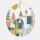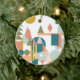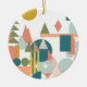 Colourful Geometric Shapes Landscape Holiday Ceramic Ornament in Teal, Coral, and Mustard Yellow