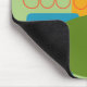 This mouse pad has a mid-century modern design of a rectangle, an oval, and a parallelogram with empty circle and parallel lines overlapping them. Want different colours? Message me.