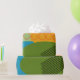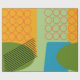 This wrapping paper has a mid-century modern design of a rectangle, an oval, and a parallelogram with empty circle and parallel lines overlapping them. Want different colours? Message me.