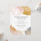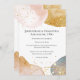 This modern, contemporary and abstract digital design comprises of gorgeous faux gold, turquoise, pink and blue shimmering abstract shapes that appear to sparkle and shine. Delicate faux gold strands and dots are scattered across them and a hand drawn leaf outline appears at the top and bottom edge. All elements are set against a white background. These are ideal for birthday, informal wedding, engagement and anniversary announcements and parties.