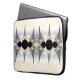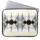 This laptop sleeve features abstract fractal art in silver and grey gradient with gold accents.