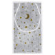 Abstract silver paper with gold stars, moon small gift bag