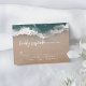 Romantic coastal themed wedding rsvp card features beautiful moody abstract watercolor sparkling ocean wave and beach background, toped with stylish script and elegant font event details, modern and simple, great for sand beach wedding, tropical destination wedding, coastal ocean themed wedding.