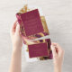 This elegant ensemble in stunning wine-red tones sets a refined tone for your wedding, tantalising your guests with a glimpse of the opulent celebration that awaits. Enhanced further with the lavish sparkle of gold glitter accents, the all-in-one wedding invitation shown here provides a template to easily add your own event details and RSVP requirements. Search ID1018 to see other pieces in this coordinated wedding set.