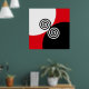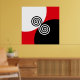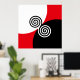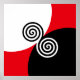 Abstract art with spiral circle geometric shapes on black red and white. Spirals symbolise the sacred cosmic energy present in everything. The double spiral represents balance and creativity. And it is at the core of life as DNA composed of double helix!