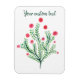 Pretty floral personalised magnet with an ink and watercolor drawing of an abstract spring plant in pink and green over customisable white background and customisable text.