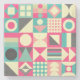 A design made up of 25 squares each with a different abstract geometric design in a harmonious palette of colours.