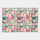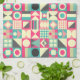 A repeating pattern made up of 25 squares each with a different abstract geometric design in a harmonious palette of colours.
