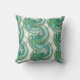 This fresh inviting throw pillow design sports three columns of an altered abstract teal, moss and deep green fractal design.