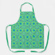 Apron in a geometric abstract star pattern In shades of lime green, cerulean blue and turquoise, accented with deep blue