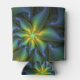 Abstract Star, Shiny Blue Green Golden Fractal Art Can Cooler