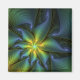 Abstract Star, Shiny Blue Green Golden Fractal Art Magnet