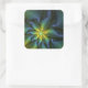 Abstract Star, Shiny Blue Green Golden Fractal Art Square Sticker