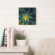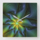 Abstract Star, Shiny Blue Green Golden Fractal Art Square Wall Clock