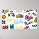 Abstract street graffiti lettering elements with grunge fonts. Urban savage spray paint art. Cool teenage graffiti cartoon design set. Creative colourful writing with drips and blobs