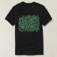 A T-shirt with an quirky hand drawn abstract surreal design, a network of shapes link together with wire like shapes which looks both natural and machine like.